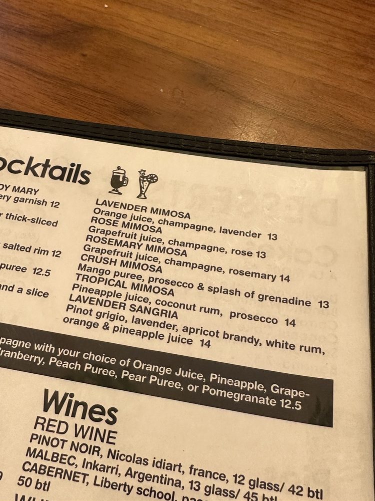 Must be 21 to purchase. Pinot grigio, lavender, apricot brandy, white rum, orange and pineapple juice.